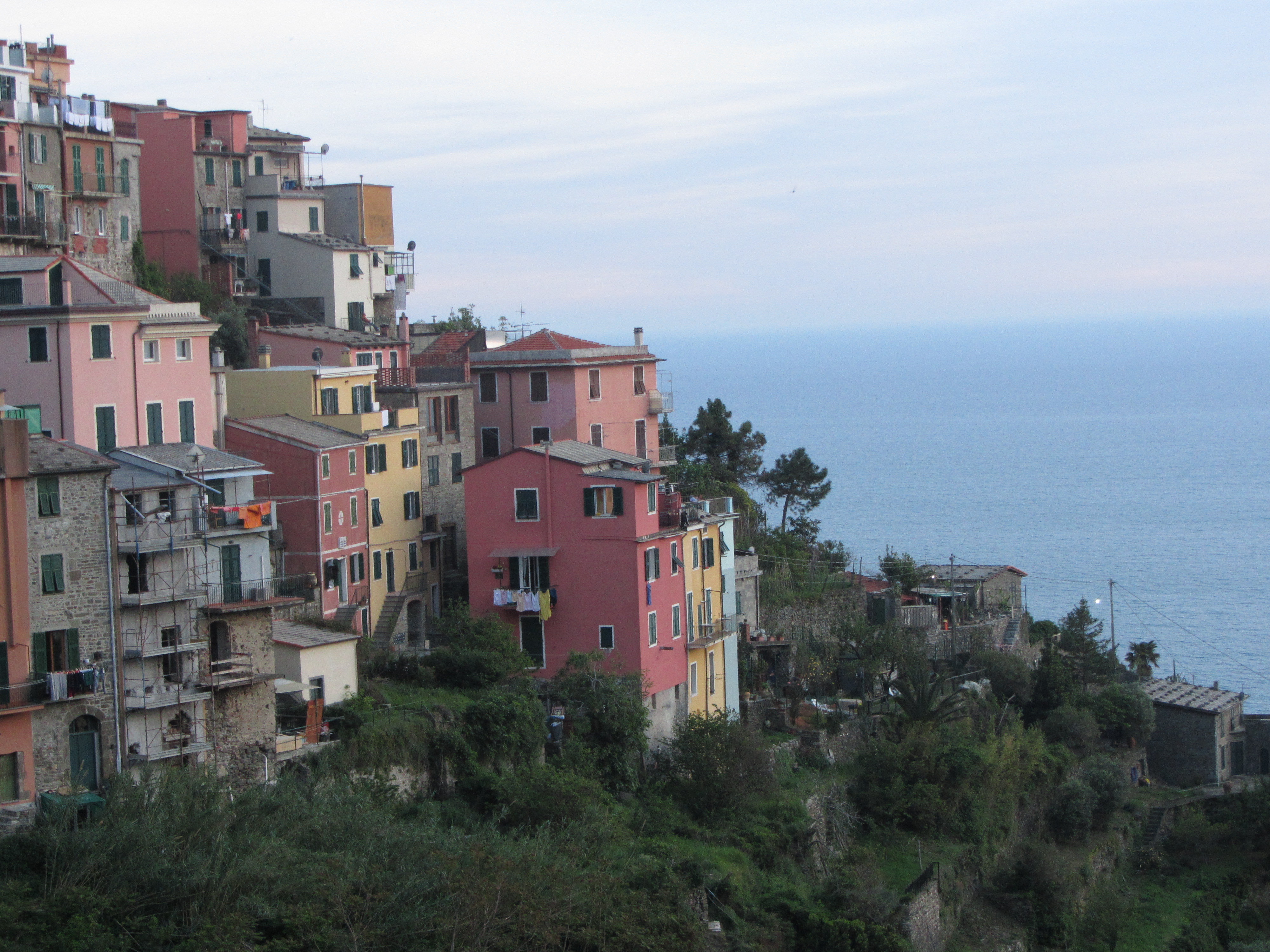 view of the Mediterranean all to ourselves. The scenery was unbelievable (note the picture to the left): dozens of colored houses clinging to the cliffs, set against lush, green mountains. It was like nothing I’d seen before, and I was sad to say good-bye.