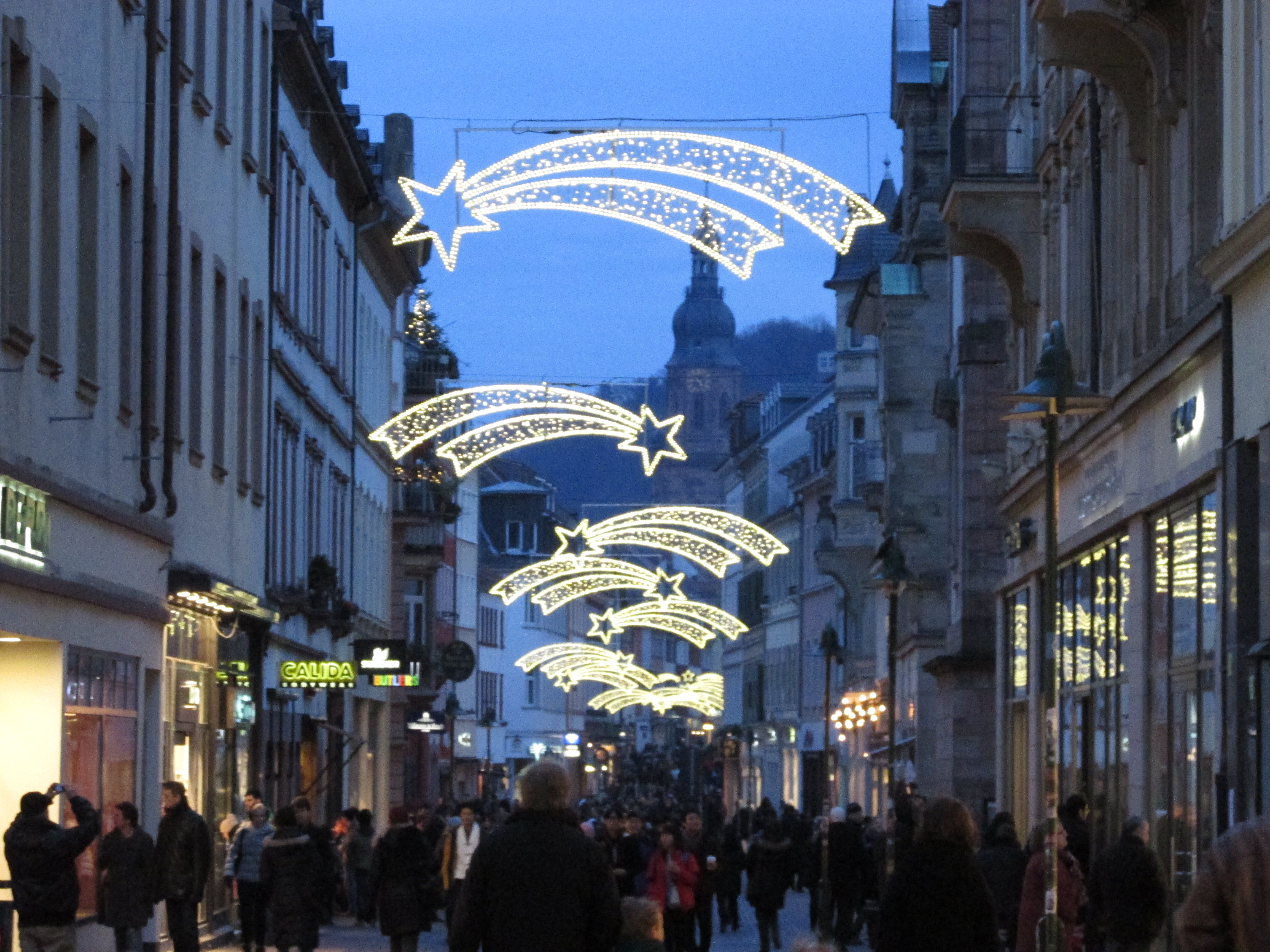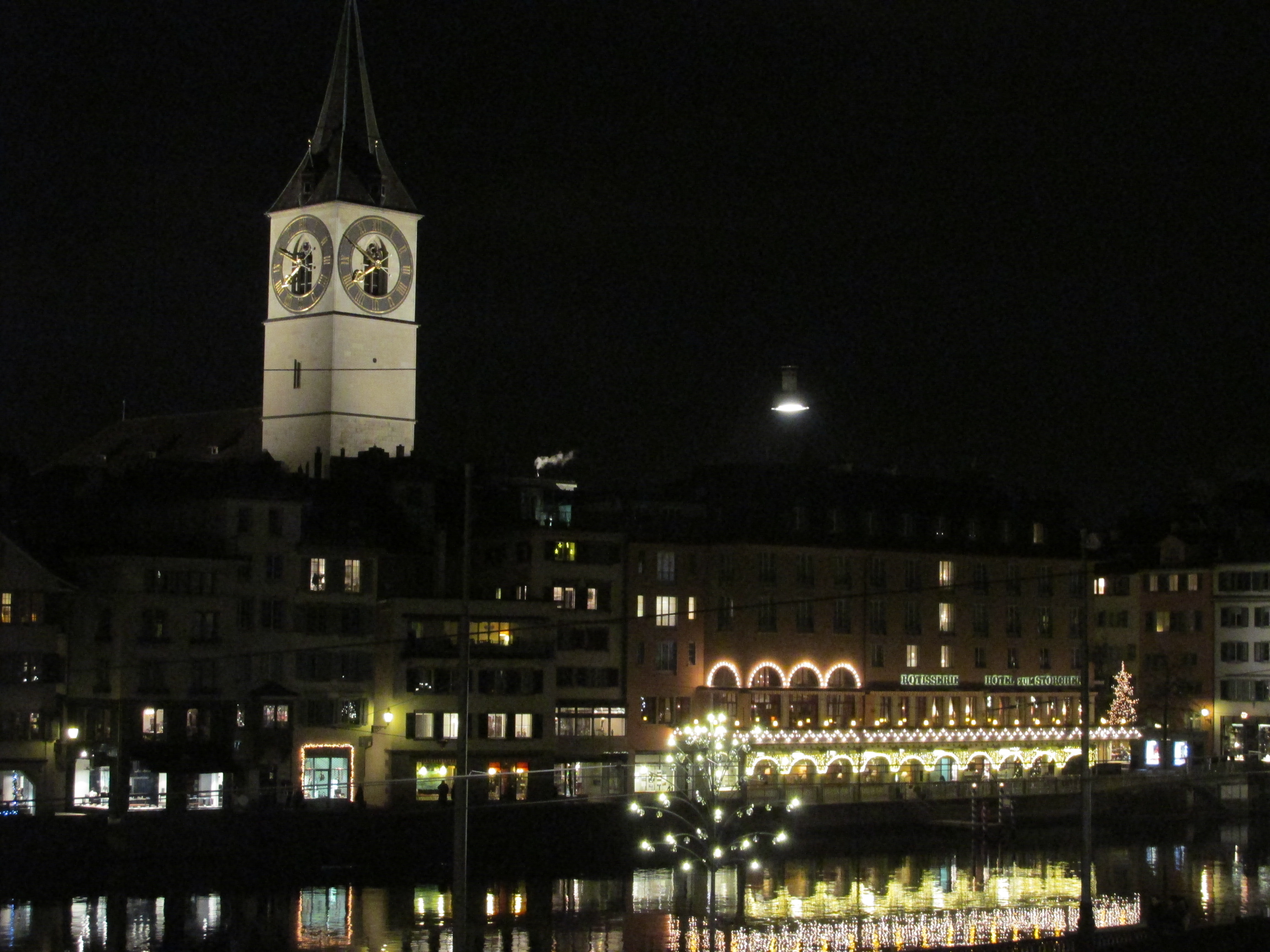 from a main drag, and the buildings we encountered on the first 15 minutes of our walk did not look like those of a famous city, especially from beneath the rim of our umbrella. But once we found the town center, it was all uphill: The rain stopped, and we found far more charming scenery than I’d expected in somewhere known as a banking capital. We capped off our day with an amazing German lunch of fried cranberry cheese, tomato soup, and some crepes for dessert (okay, we added a little French to the menu).