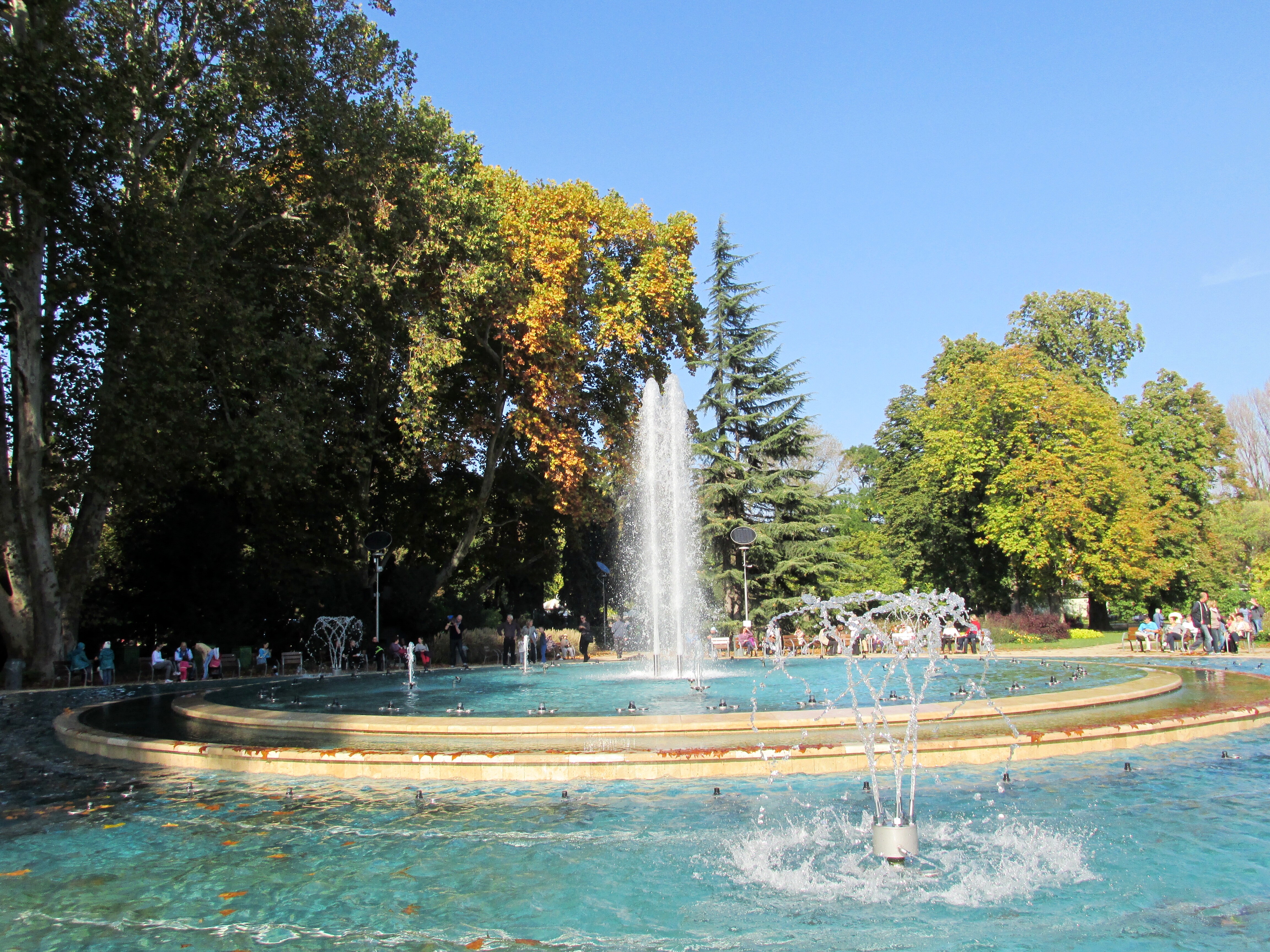 suspensions. At Margaret Island, on the far end, I worried about going too far — we had a long journey back. But a few steps into the fall-color paradise of fountains, bikes, and picnics, I abandoned that notion in favor of just enjoying the sunshine